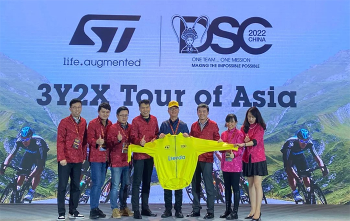 2022年半导体市场变幻莫测,利尔达团队不畏难、踏实干,积极开拓汽车电子、新能源等新市场和新客户,继续保持ST产品线的高速成长。利尔达董事长叶文光代表集团在掌声中接过了ST黄色领骑衫奖项(Closest to reach 3Y2X)。
