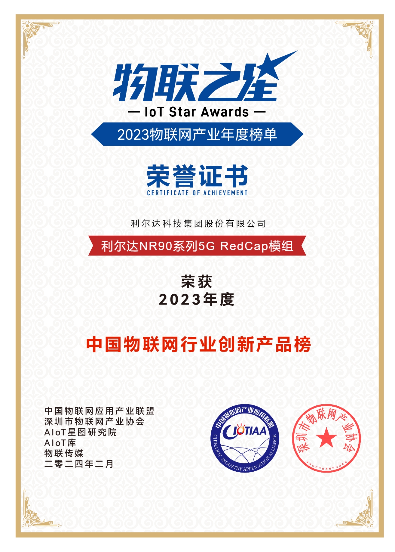 本次荣获“中国物联网企业100强”的荣誉是业内对利尔达集团整体实力的肯定,而NR90 RedCap模组入选创新产品榜,则体现了公司在核心技术研发方面的强大竞争力和对行业未来发展脉络的精准把握。