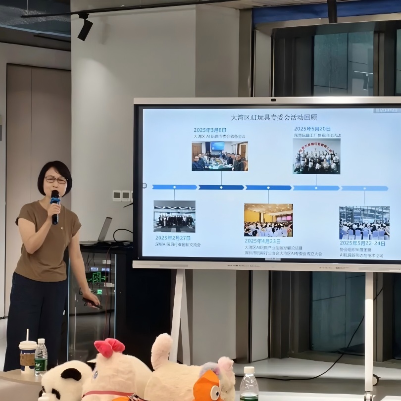 交流会尾声,协会秘书长刘艳芳总结回顾了大湾区AI专委会前期工作,并介绍了专委会下半年系列活动规划,为成员单位描绘了清晰的协作蓝图。紧接着,副秘书长胡小抒讲解了 《AI玩具标准制定及技术质量提升项目》的核心内容与推进计划,强调了行业标准建设与技术质量升级对于产业健康发展的重要性,引发了广泛共鸣。