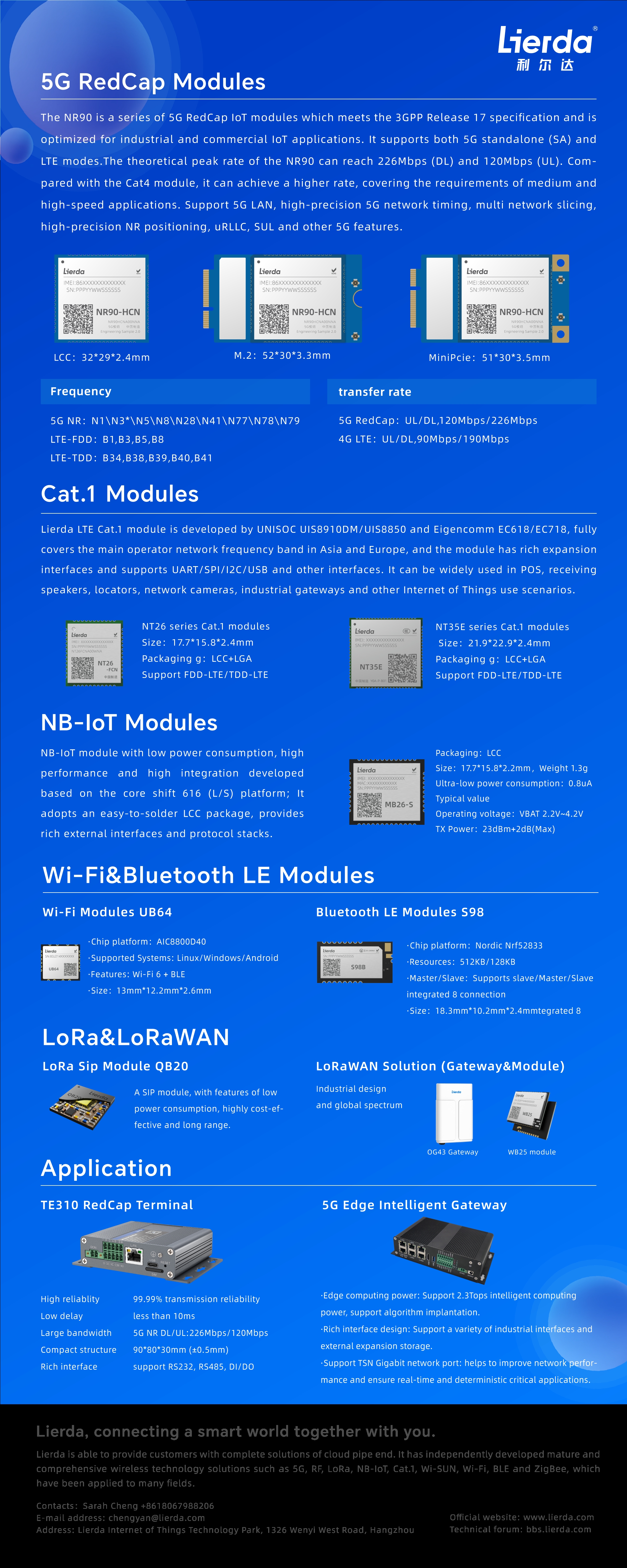 近年来,我国在物联网通信技术的网络构建、产业升级及应用创新上取得了显著成就。法国总统马克龙曾提到,目前法国在成为欧洲AI中心方面处于领先地位,本次展会有利于中法双方互联互通,加速国内企业与国际伙伴在物联网应用领域的紧密合作,并在法国乃至欧洲分享我国物联网应用发展的实践经验与创新理念,驱动“中国智造”走向世界。作为物联网领域优秀的产品及解决方案供应商,利尔达有幸获邀参展,展品涵盖了NB-IoT、Cat.1、WiFi、BLE、星闪、LoRa、5G RedCap等模组及UWB定位产品和RedCap工业网关等。