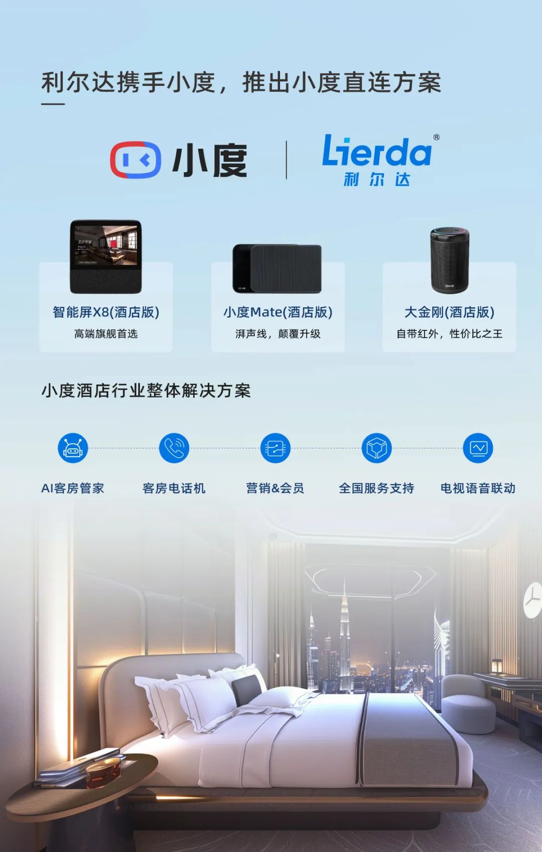 利尔达精心打造的酒店智能解决方案与小度顶尖AI智能平台深度交融,赋予客房内的家居设施超乎想象的智能感应与自主适应能力,彻底颠覆传统住宿体验。目前已在如家、亚朵、丽枫、喜来登、温德姆、雷迪森、维也纳等诸多大型连锁酒店落地。