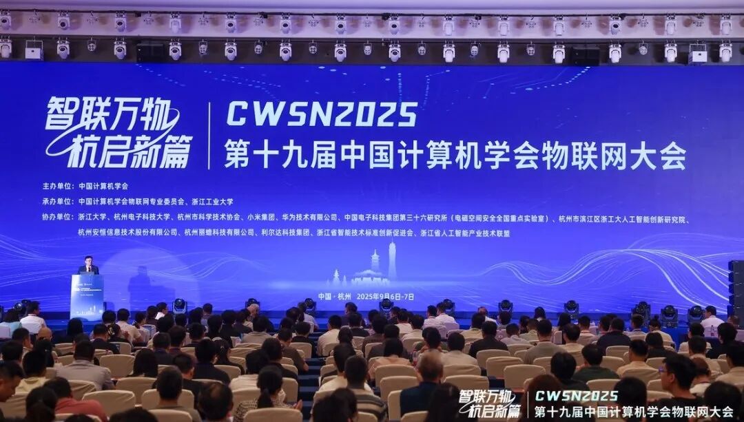 9月6日至7日,第十九届中国计算机学会物联网大会(CWSN 2025)在杭州成功召开。本届大会由中国计算机学会主办,汇聚了来自政府、企业、学术界及行业组织的专家与从业者代表,围绕智能物联网的前沿技术突破与产业趋势进行了深入地交流与研讨。