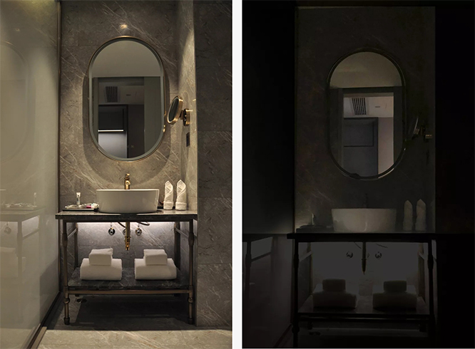 ●起夜的时候卫生间只有台盆下的灯带自动点亮,精心呵护客人的睡意。