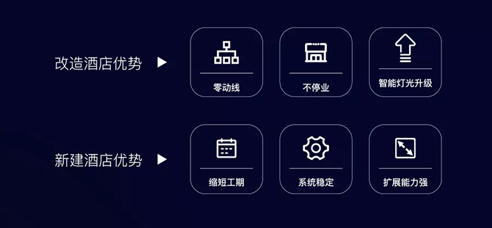 利尔达酒店无线客控系统无论新建酒店还是升级改造都是非常方便,节省材料、施工期短、无需停业、智能灯升级、系统稳定、扩展能力强,无缝对接未来物联网。