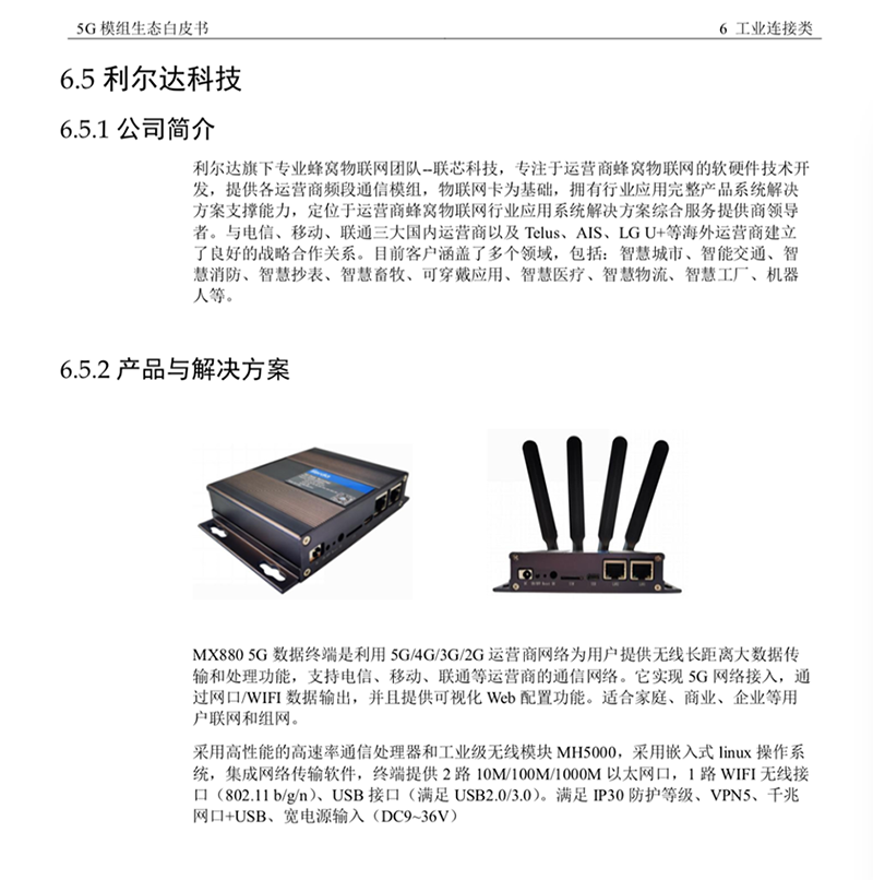 加冕IOTE金奖,利尔达5G工业边缘智能终端在首度发布的《5G模组生态白皮书》中“C位出道”