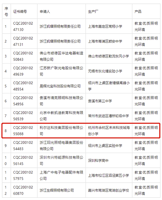 教室优质照明光环境认证完整名单最新出炉,利尔达榜上有名!