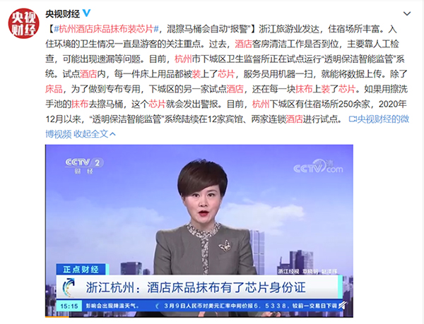 近日,#杭州酒店床品抹布装芯片#的话题登上微博热搜。据央视财经报道,目前,杭州市下城区卫生监督所正在试点运行“透明保洁智能监管”系统。