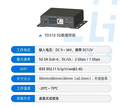 TD310 5G数据终端具有高效、稳定、易安装、适配性强等优势,可广泛应用于工业、商业、企业用户联网和5G数据组网等应用场景,尤其在智慧工厂、智慧仓储、智慧医疗等领域有望迎来更大的发挥空间。