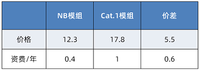 2、计算模组成本+资费, Cat.1与NB-IoT相比依然存在着10块钱左右不可忽视的价差。