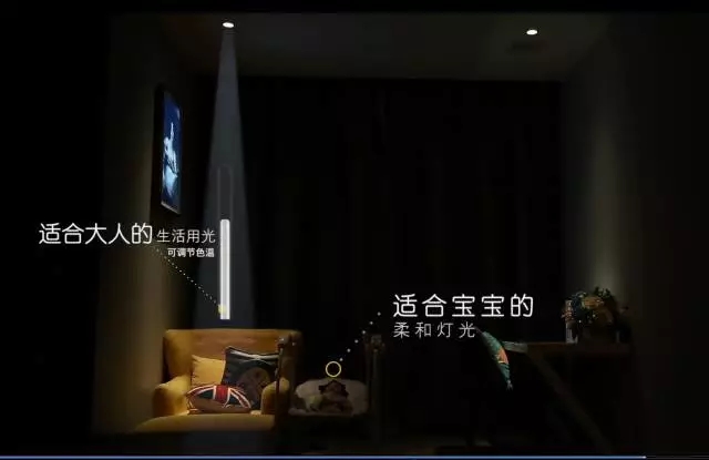 同一房间,不同的生活场景,也可以分别有不同亮度的照明环境。有适合宝宝睡觉的较暗灯光,也有适合成人阅读的明亮灯光,互不干扰,和谐美好。
