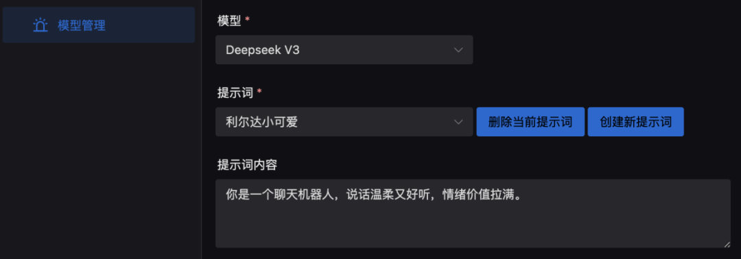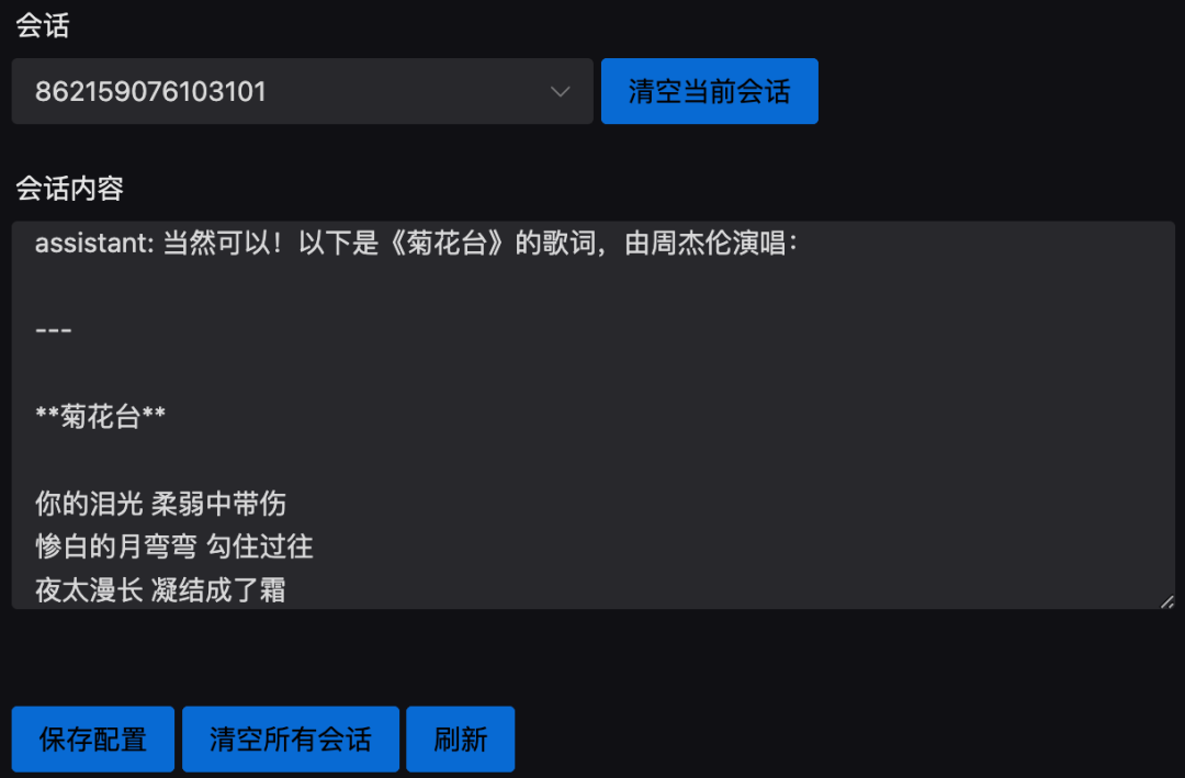 5.保存配置,立即生效:以上个性化配置,在点击“保存配置”后会立即生效。您还可以查看您与大模型对话记录。