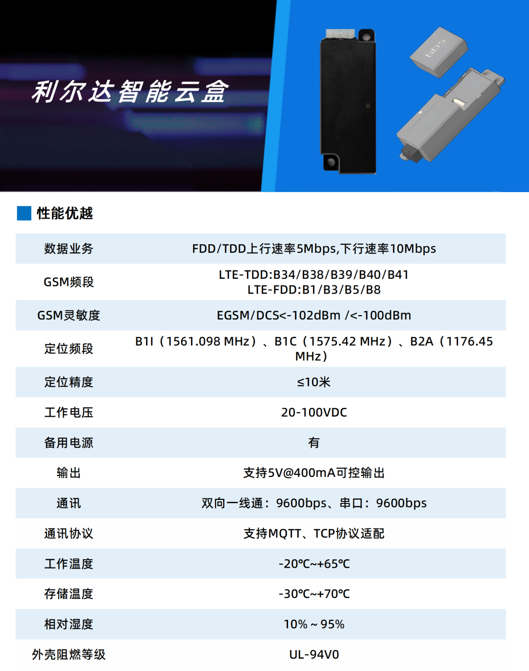 基于此,利尔达推出了一款专为新国标两轮电动自行车、轻便电动摩托车打造的智能云盒,集4G通讯与北斗定位于一体,不仅覆盖 “安全防护、智能管理、数据服务” 三大核心场景,更以高安全性、可定制化、灵活的规则引擎,为用户与企业带来全方位价值。