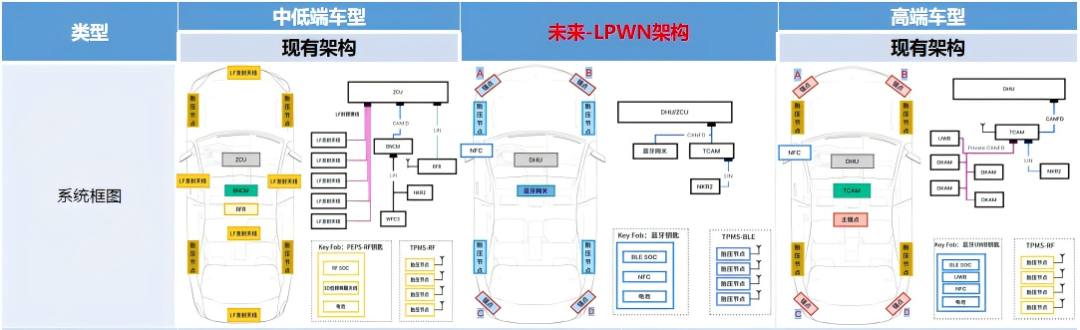 以PEPS(无钥匙进入与启动系统)和TPMS(胎压监测系统)为例,LPWN架构不仅能为高端车型显著降低成本,更能通过蓝牙6.0 Channel Sounding技术提供高精度定位能力,让主流中低端车型在无需增加成本的前提下,实现感知性能的升级。