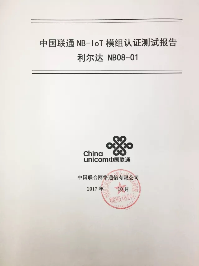近日,利尔达NB模组NB08-01在中国联通网络技术研究院顺利通过了中国联通物联网通信模组的测试认证。