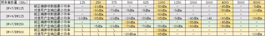 (2)通过优化后,进行实际测试优化效果,主要针对BW125KHz:offset 1MHz、BW250KHz:offset 2MHz,BW500KHz:offset 1MHz这三个出现虚假接收最严重的配置进行测试;