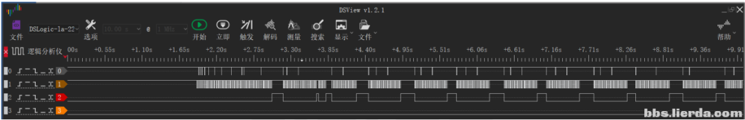 通过逻辑分析仪抓取模组TX、RX、RTS、CTS引脚波形,模组引脚与逻辑分析仪通道匹配如表1所示: