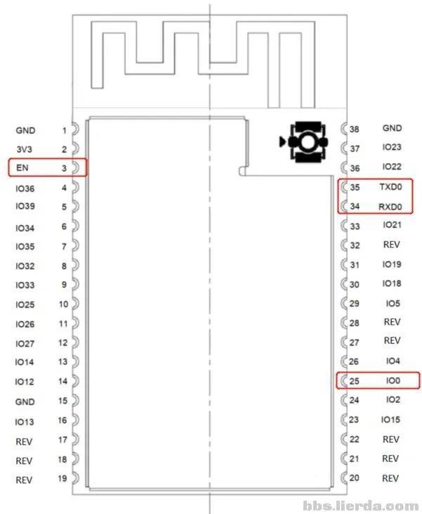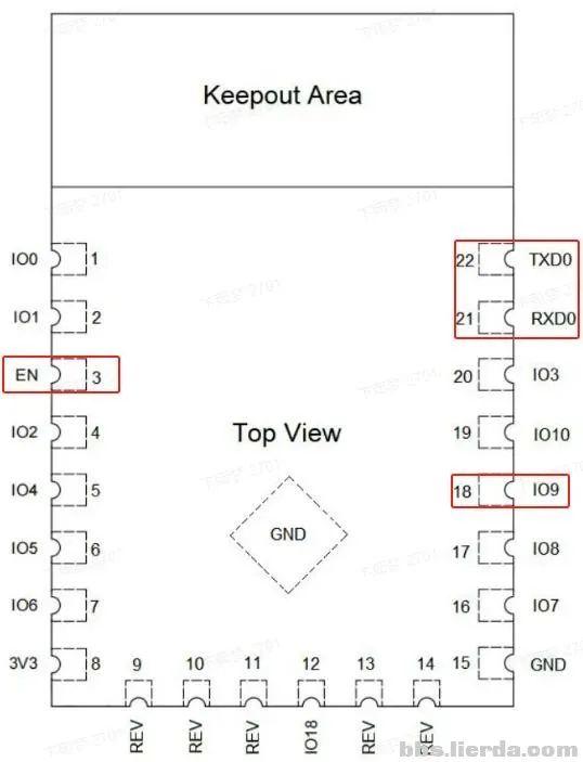 (3) TXD0 和RXD0 为烧录串口,用于固件升级,默认波特率为115200bps,最高可达921600bps。